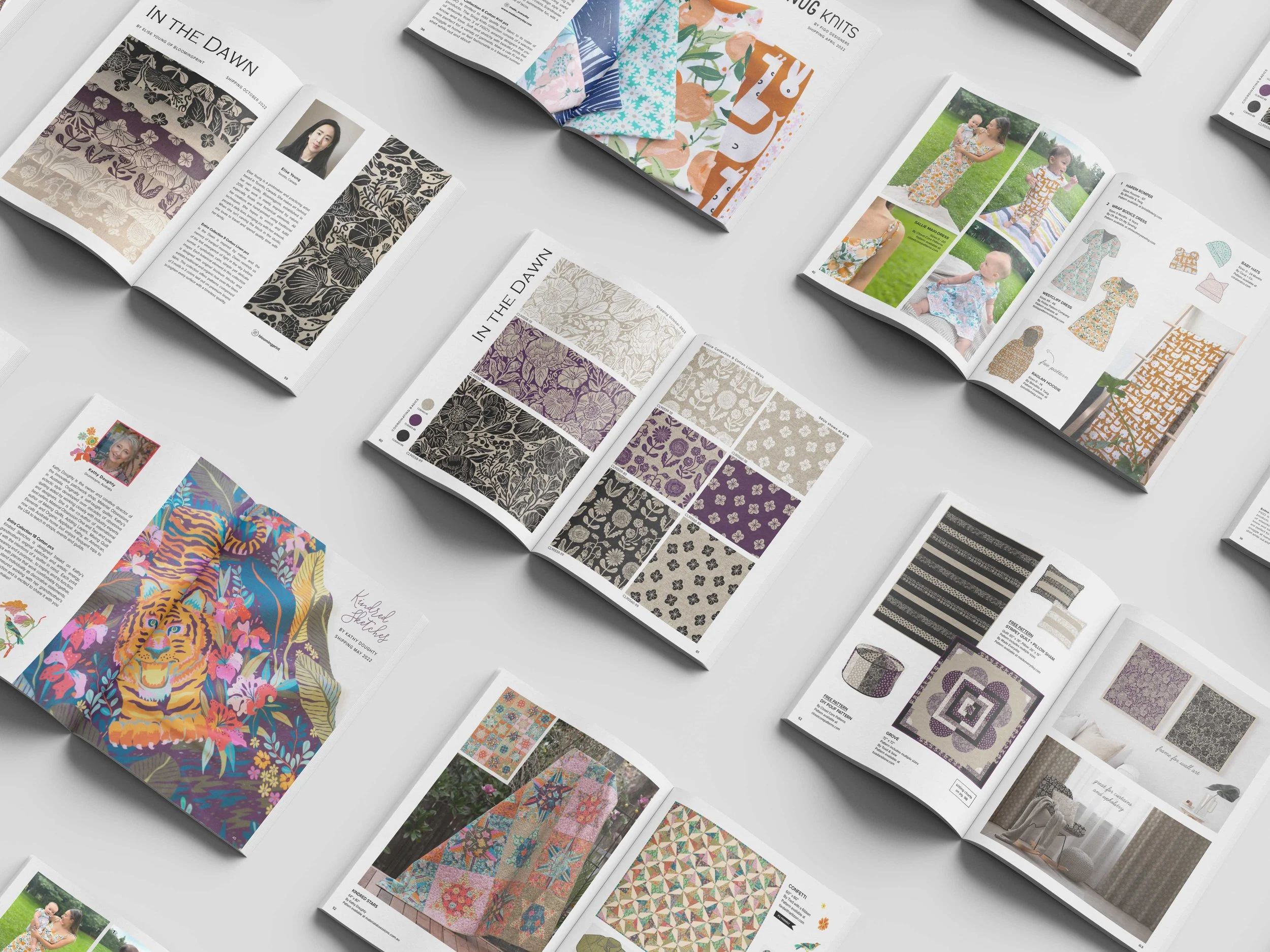 Digital versions of all FIGO Fabrics look books can be viewed at figofabrics.com. Look books from Fall 2020 to Winter 2023 were created by me.